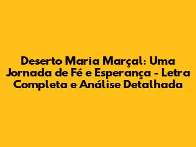 Deserto Maria Marçal: Letra Completa E Análise Profunda