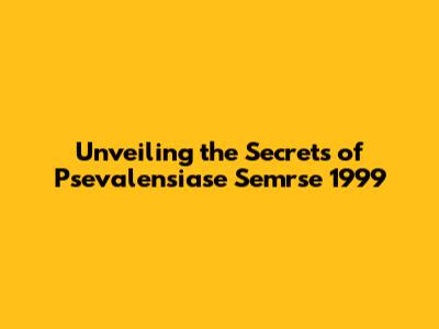 Unveiling The Secrets Of Psevalensiase Semrse 1999